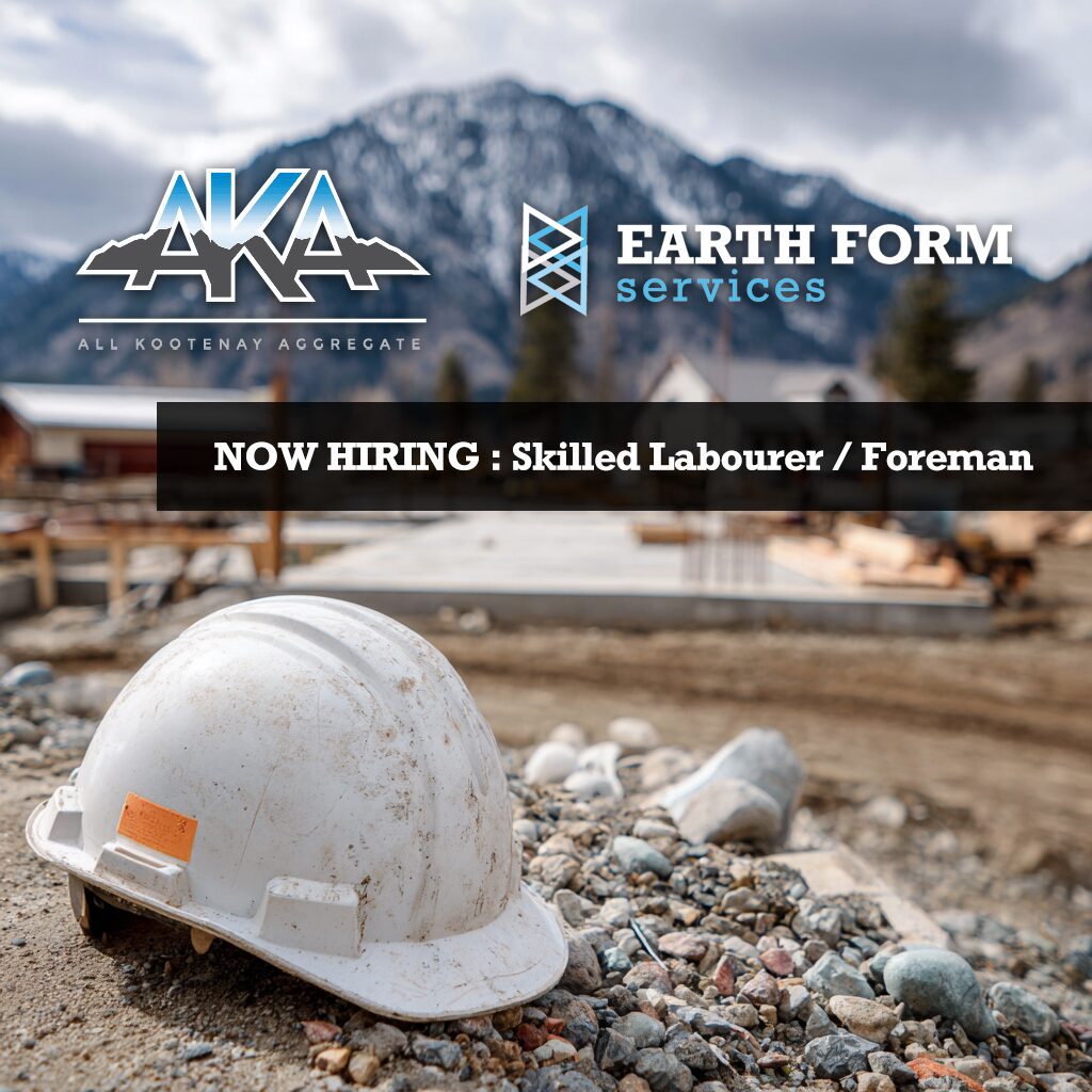 Earth Form Services and All Kootenay Aggregate — two trusted, locally owned companies serving the East Kootenay region — are hiring for a Skilled Labourer / Foreman to join our team in a full-time, permanent position.